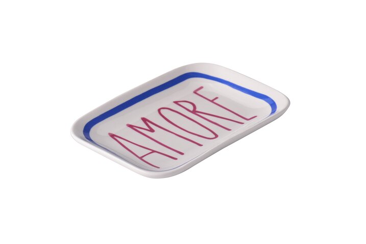 ✔ Design: Rechteckige Keramikschale mit dem Schriftzug „AMORE“ in Rot