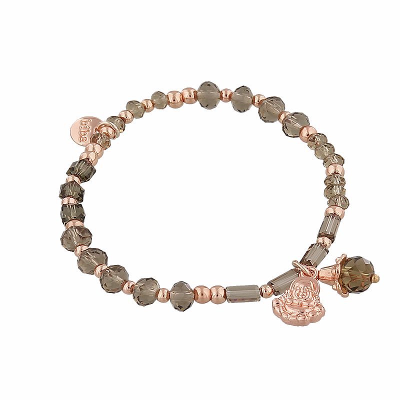 Elegantes Armband mit Buddha-Anhänger – Stilvolle Harmonie aus Rauchglas und Roségold