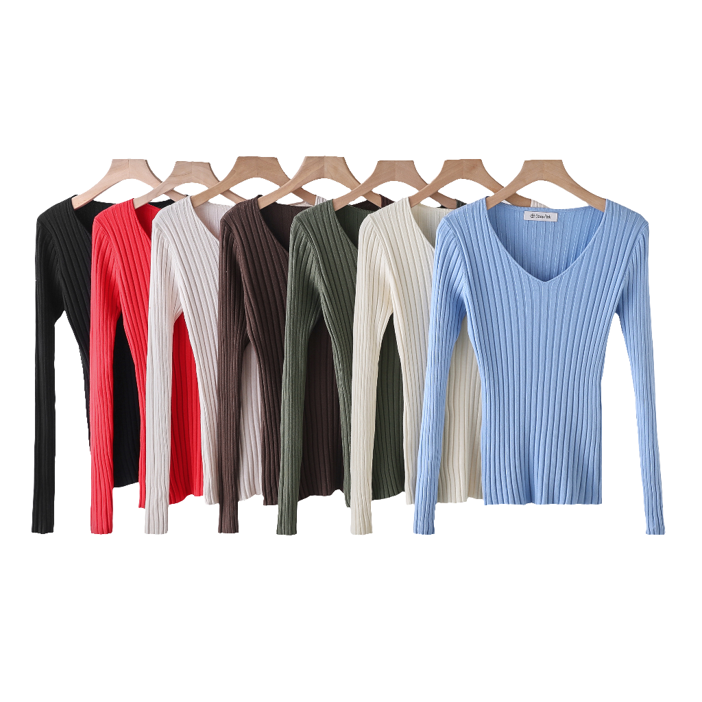 - Wunderschöner dünner Pullover mit abgerundetem V-Ausschnitt