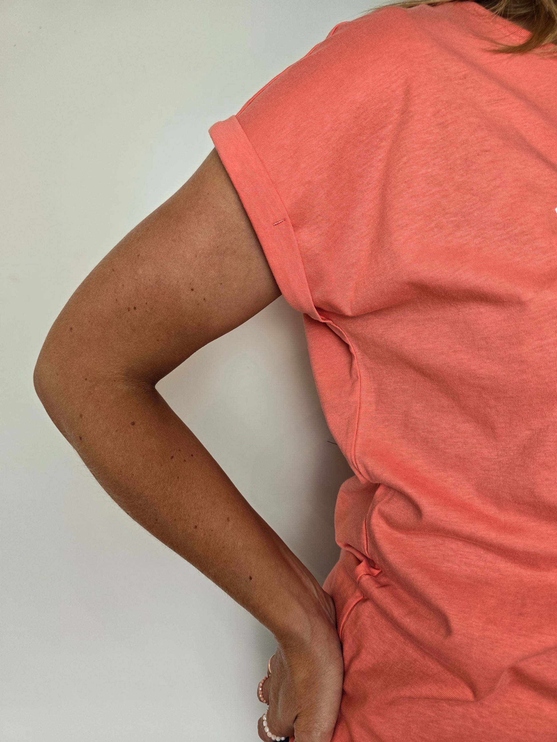 Ob sportlich zur Jeans oder feminin zum Rock. Das Be Famous Classic Roll Up T-Shirt ist ein lässiges Basic-Piece für jeden Tag. Das Shirt zeigt sich mit einem langen Schnitt und verkürzten Ärmeln. Tonige Stitchings und ein Rundhalsausschnitt tragen zum typischen Look bei. Dank seiner Single-Jersey-Qualität aus Baumwolle ist dieses Modell atmungsaktiv, reißfest und saugfähig. Das Shoulder Tee fühlt sich angenehm auf der Haut an und ist auch für Allergiker geeignet.