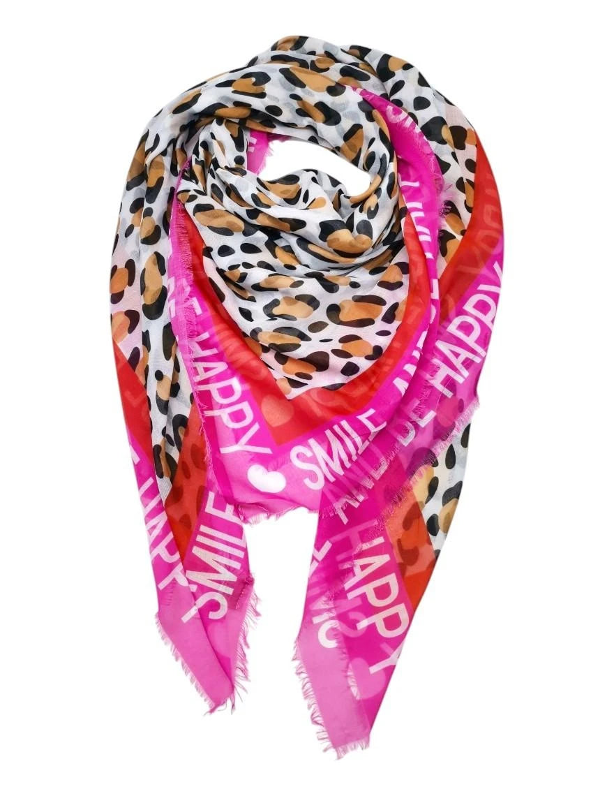 Viskose Tuch „Smile and Be Happy“ – mit Leopardenmuster | Damen Schal - FUCHSIA