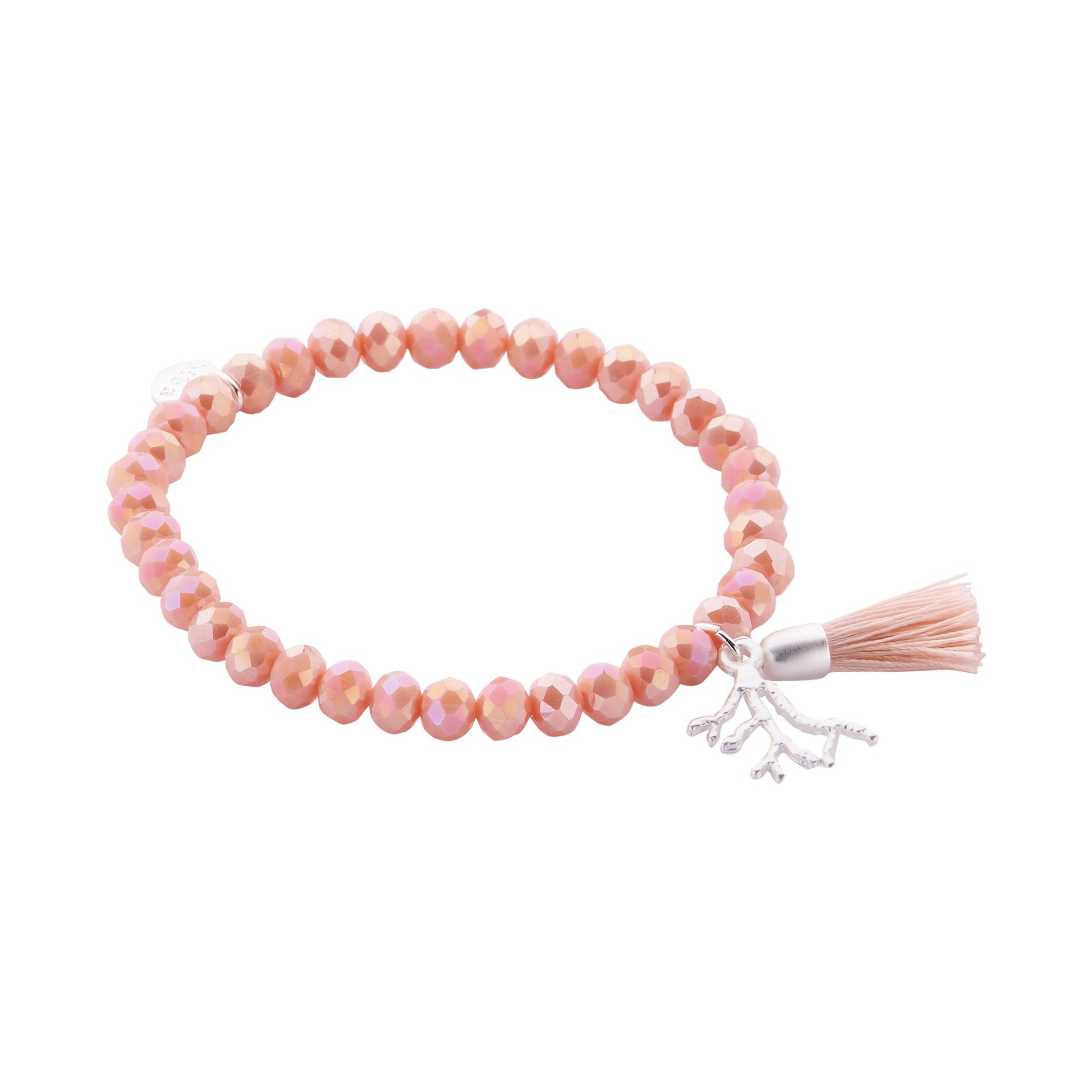 Verleihe deinem Look eine sommerliche Leichtigkeit mit unserem bezaubernden Perlenarmband in sanftem Rosé. Die schimmernden, facettierten Glasperlen reflektieren das Licht wunderschön und verleihen deinem Handgelenk einen Hauch von Eleganz. Der silberfarbene Korallen-Anhänger und die zarte Stoffquaste setzen maritime Akzente und machen das Armband zum perfekten Accessoire für sonnige Tage und Urlaubsstimmung.