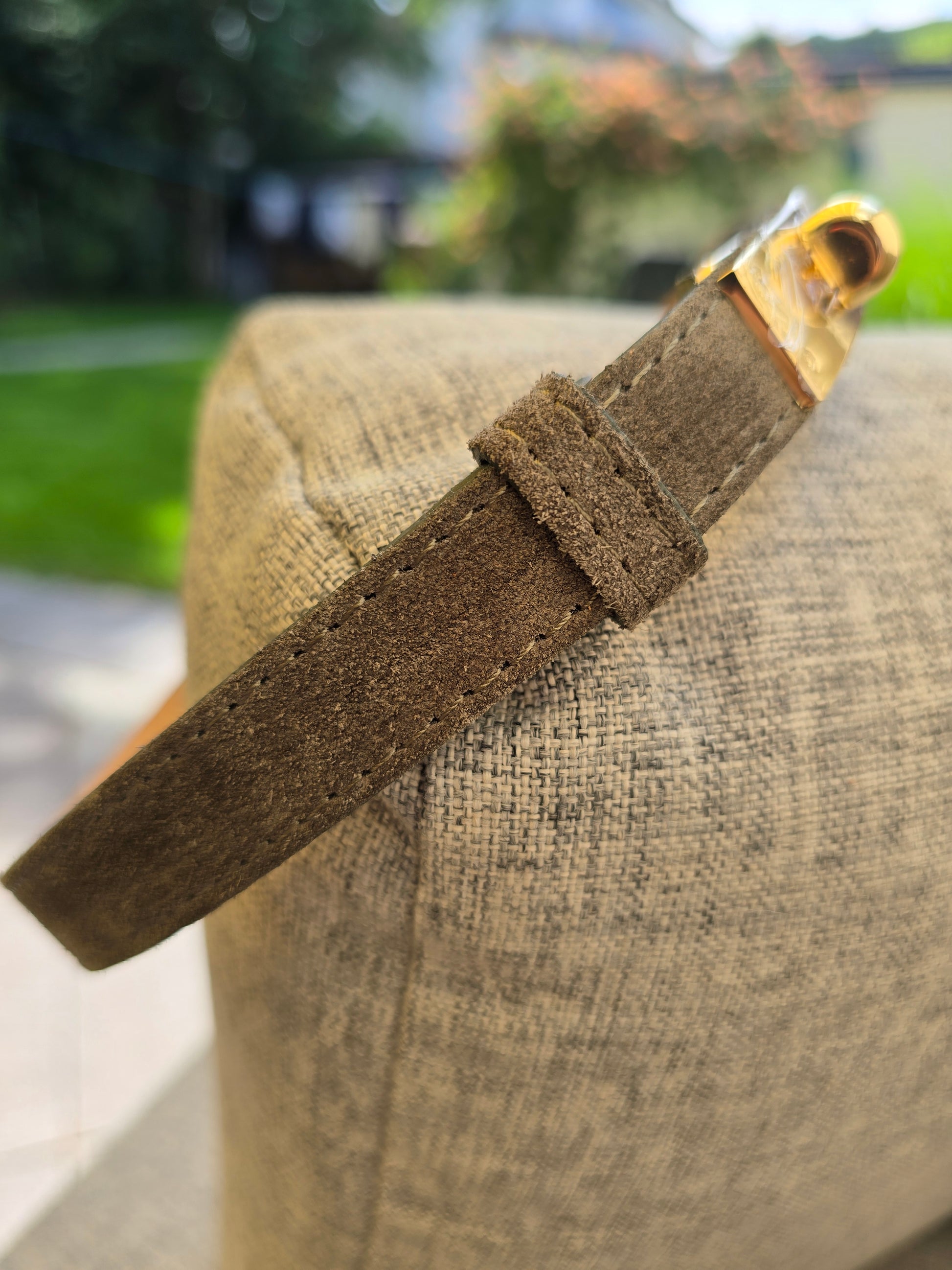 - Der Gürtel ist ohne Gürtellöcher gestaltet