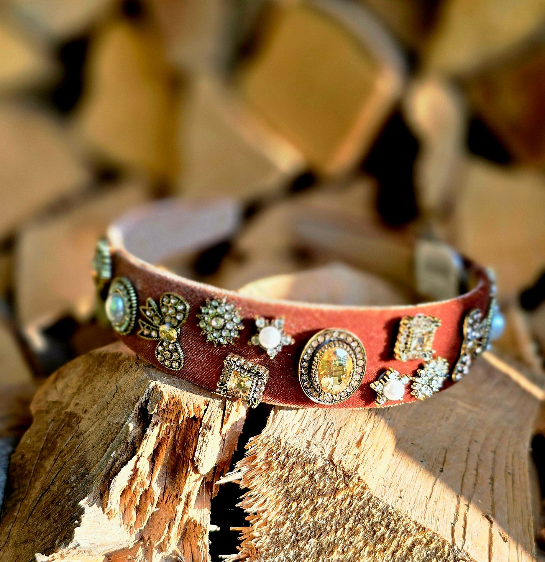 Luxuriöser Haarreifen mit funkelnden Schmucksteinen Samt Bronze
