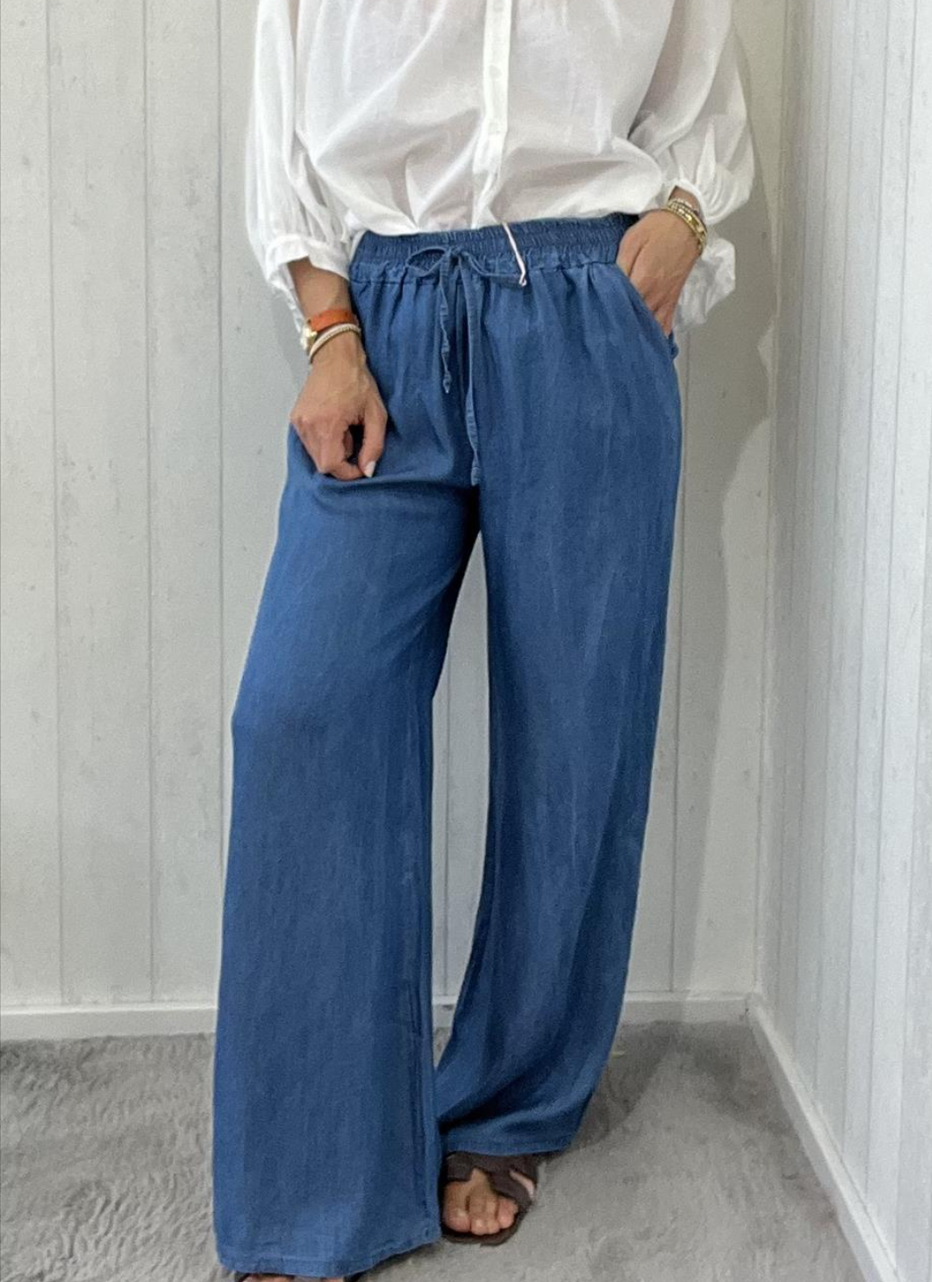 Lässige Wide-Leg Jeanshose aus Tencel – in Hell- und Dunkelblau