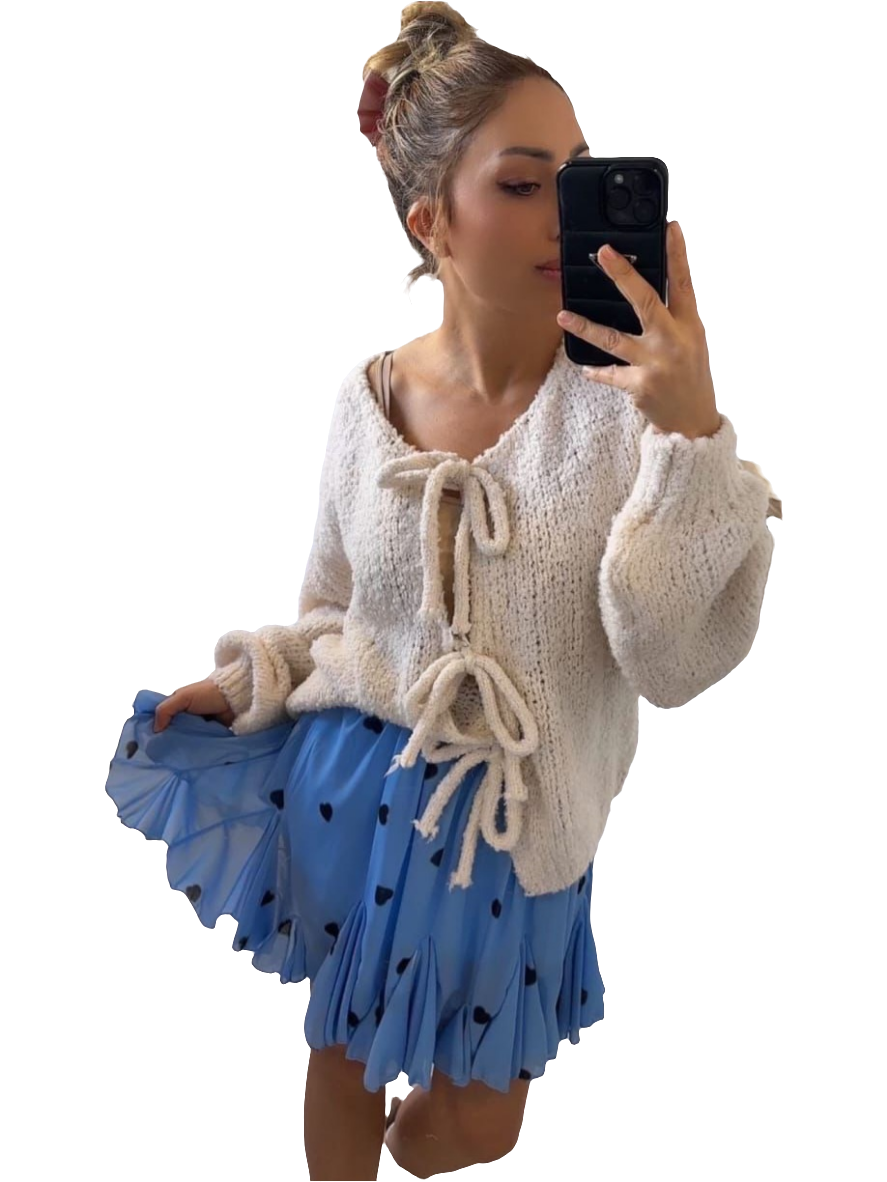 Design: Blaue Basis mit Herzprint und Volantsaum