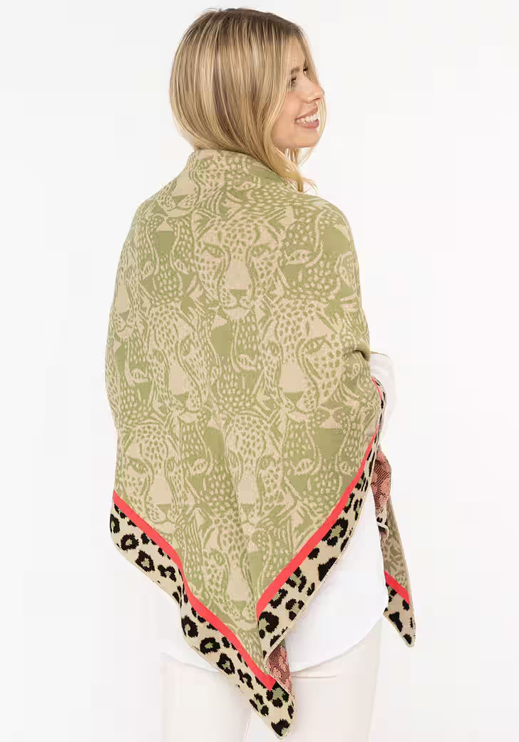 - Trendiges Dreieckstuch mit Leo- und Herz-Muster – ein modisches Statement-Piece mit farbenfrohen Highlights